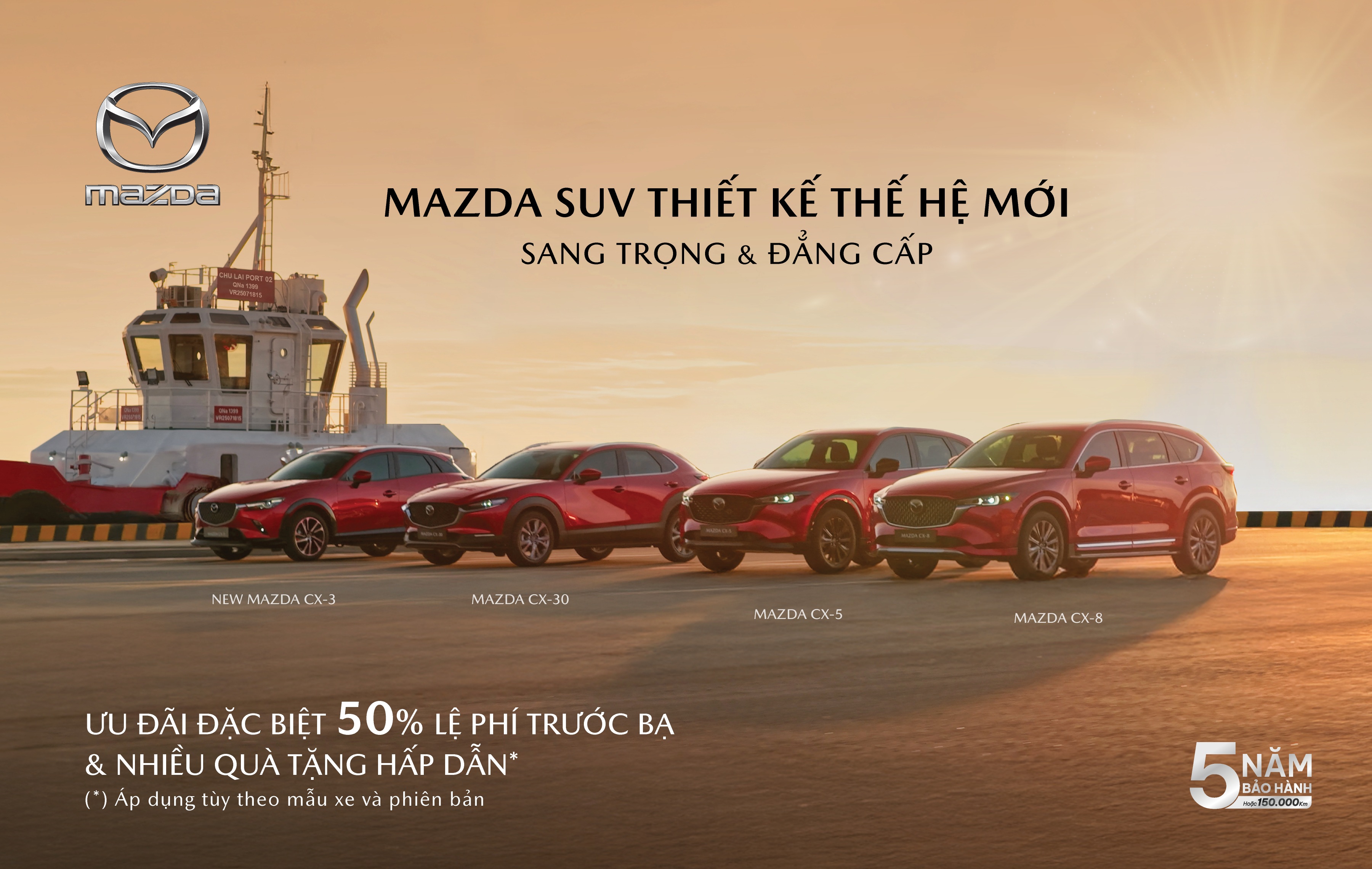Tháng 8/2025, Mazda áp dụng mức ưu đãi tương đương 50% lệ phí trước bạ, với giá trị cao nhất lên đến 45 triệu đồng, tùy theo từng mẫu xe và phiên bản cụ thể.